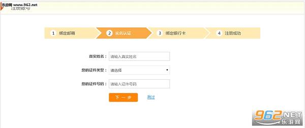 第七步:进入实名认证页面后,按照提示填写您的真实信息,随后点击【下一步】按钮。