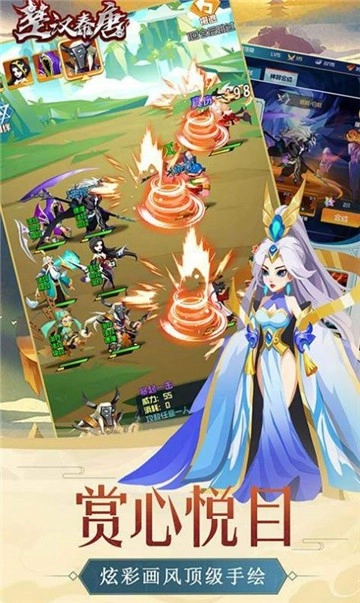 楚汉秦唐是一款放置卡牌策略游戏,它有着别具一格的美术风格,既融入了浓郁的中国风元素,又吸收了欧美扁平化设计的特点。游戏构建了新颖的架空世界观,背景故事打破次元壁垒、跨越时空界限,玩家在游戏中可以招募来自不同朝代的英雄人物,通过不断强化自身、提升实力来招揽更多英雄,最终实现统一分裂大陆的目标。