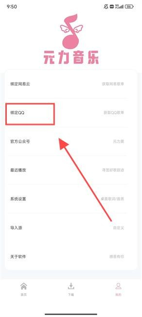 3进入设置页面,找到并点击“绑定QQ”的选项,完成这一操作后,就能把QQ里的歌曲添加进来了。