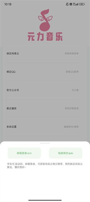 3、进入设置界面后点击“绑定网易云”,根据自身需求选择合适的绑定方式,完成后就能获取并导入网易云歌单了。
