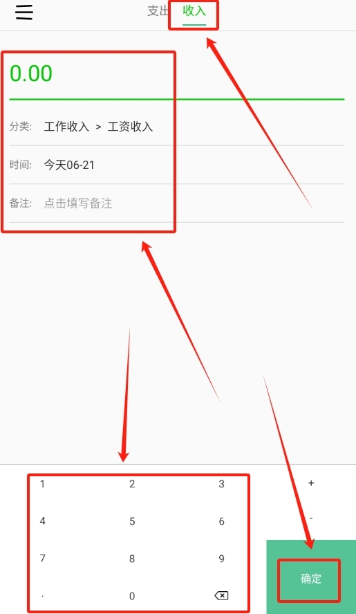 3、记录收入的操作也类似,选好对应的收入类型,填好收入金额,最后点击保存,就能轻松记录收入情况。