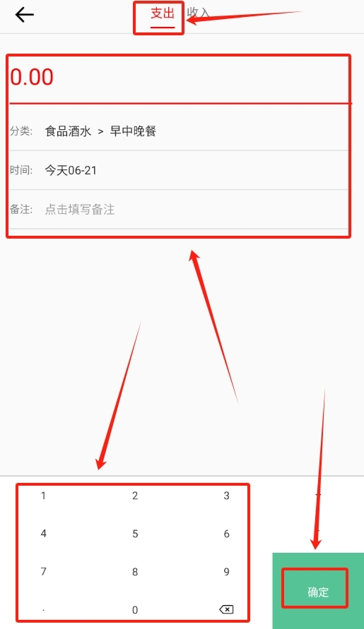 2记录开销时,先在各类支出类别中选定对应的选项,接着填写具体的花费数目,检查信息准确后点击保存按钮即可完成操作。