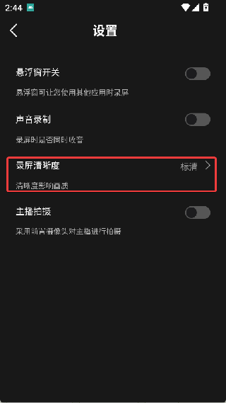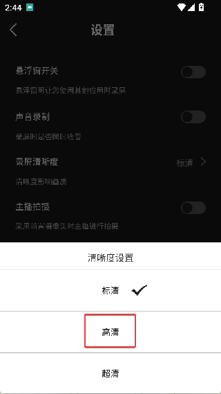 2. 点击录屏清晰度。