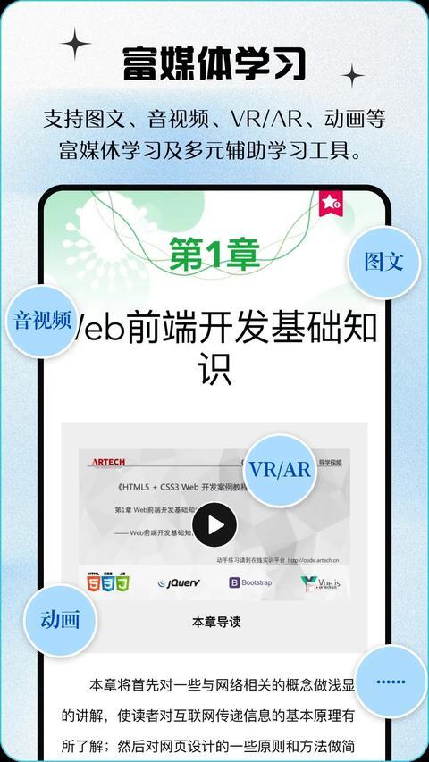 内容以富媒体形式呈现,支持PC端和移动端同步互联,适应多种学习场景,为用户提供灵活便捷的学习方式。