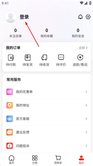 2、进入个人页面后,点击登录区域,即可跳转至登录方式选择页面。