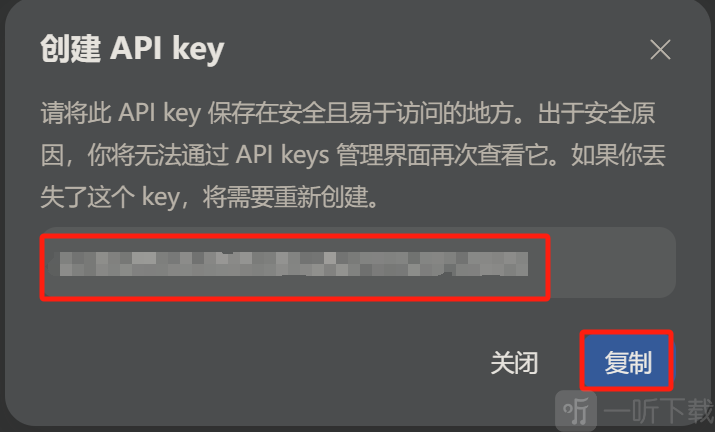 请务必妥善保管你的API Key,不要向任何人泄露,防止出现安全风险!