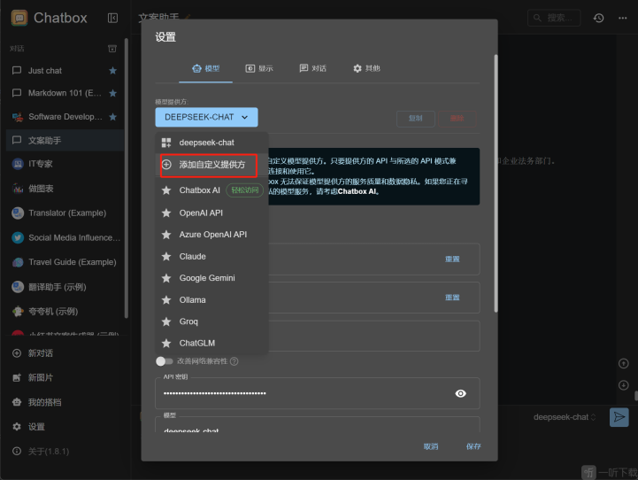 有一款名为Chatbox的聊天应用,它能在多个平台上使用。只要你设置好DeepSeek的API接口,这款应用就能摇身一变,成为你身边一个功能强大的AI助手,随时为你提供帮助。