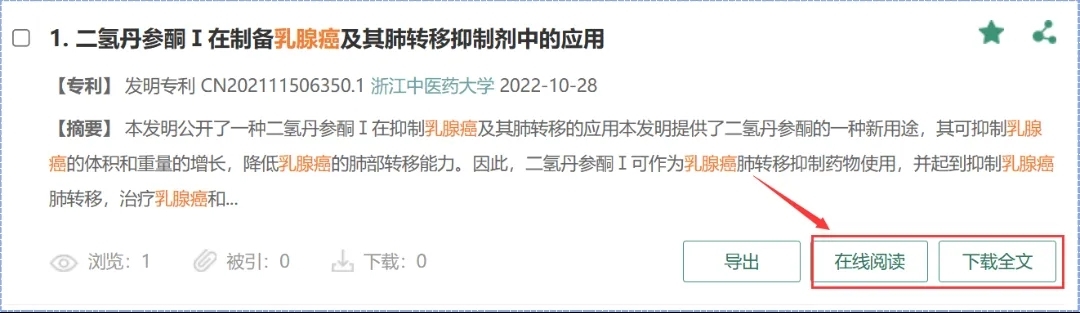 非中华期刊文献、专利、标准、法规文献的全文获取方式如下:在检索结果页面或文献详情页面,点击“在线阅读”“阅读全文”或“全文”按钮,即可直接在线阅读文献全文。