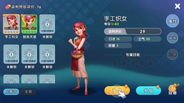 在主线任务流程中,要是想让家园的内容更加丰富,就得借助谈判手段来变更土地的使用性质。而这时候谈判技巧就派上用场了,我们可以通过升星的方式提高小帮手的等级,以此来增强谈判成功的概率。