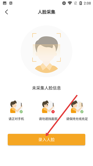 2接下来进入人脸信息采集界面,仔细阅读并确认相关采集须知后,点击界面底部的人脸录入按钮,此时会弹出用于启动人脸采集流程的操作选项窗口。