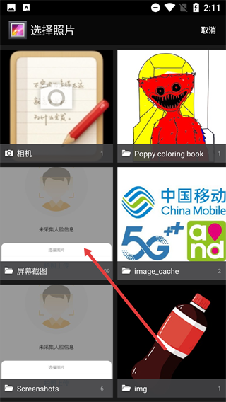 4在照片选择界面,点击想要选取的照片对应的选项,选中该照片后,按流程继续完成人脸信息的采集步骤。