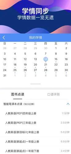 4可借助点读笔的数据包管理、口语评测及学情追踪等功能模块,实时掌握学习动态与最新进展。