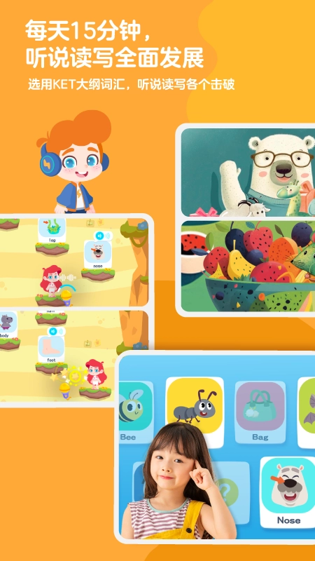 每天只需15分钟,孩子们就能在听、说、读、写各方面得到全面发展,尽情享用海量的学习资源。