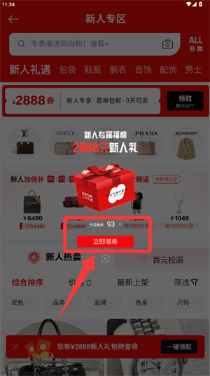 2进入专为新用户设置的区域后,点击“立即领取优惠券”按钮,即可获得专属于你的优惠福利。