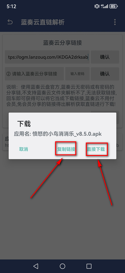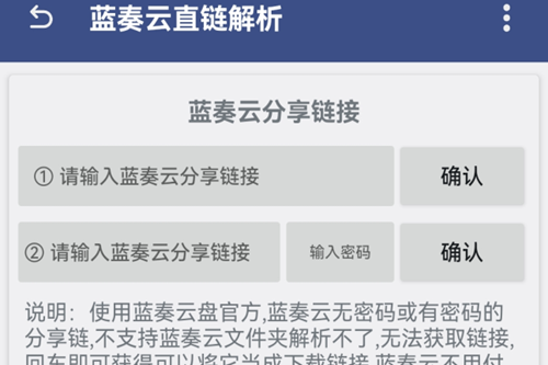 链接解析功能的使用十分简单:用户仅需把蓝奏云的分享链接复制粘贴到App里,然后