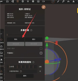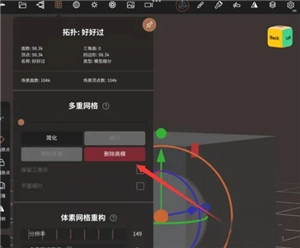 按照箭头指示,在“拓扑”分类的选框中找到“删除高模”选项并点击。