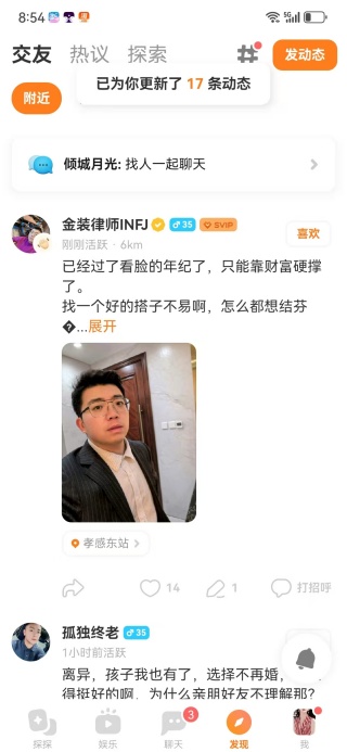 4、用户还可以进入发现专区在线互动交友,支持随时在线互动评论。