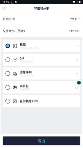 6、一切准备妥当后,点击页面右上方的生成按钮,选择心仪的模式,便能导出视频、gif等格式的文件。