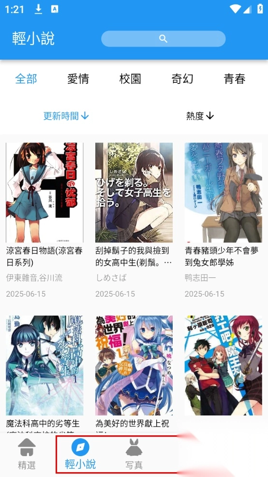 2、软件不仅提供了漫画,更有轻小说、写真集、动画等等;