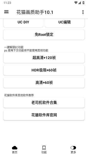 更多>花猫画质助手一款功能齐全的手机画质修改器工具软件,用户可以一键安装在手机上体验到便捷的游戏画质修改与辅助功能的快速实现,用户可以根据自己的使用需求,完成更多游戏画质性能修改的直接使用,独特的专属游戏工具软件随时随地打开进行使用,快速匹配对应的游戏版本,完美兼容了不同的手机型号版本进行使用,带来花猫画质助手APP的所有版本免费下载,快来安装体验吧!