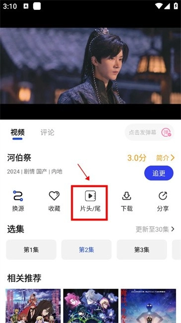1.进入app找到想要观看的作品后,点击“片头/尾”