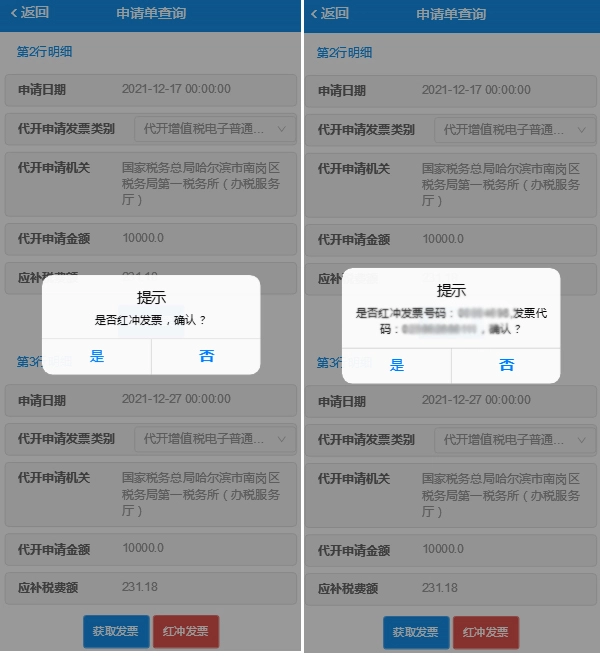 请确认相关信息,其中包含发票号码与代码,具体如下图所示: