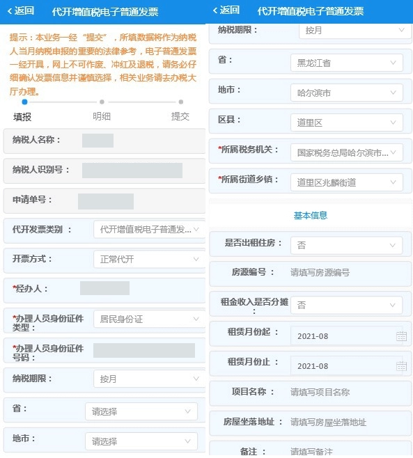 进入【代开增值税电子普通发票申请】功能后,请注意查看提示信息。