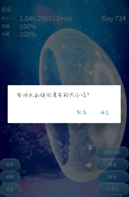 当然,要是你打算将水母重新放回原来的水缸,仅需点击右下角的“重置水缸”就行,具体位置参照图示。