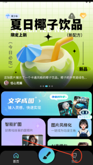 3、进入首页,即可看到文字成图、智能扩图、AI表情包等众多强大功能。