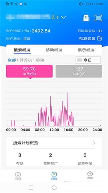 实时掌握账户的最新数据,能够切换投放设备类型来查看实时点击消费情况。数据以图形化呈现,让您更直观清晰地了解投放趋势。