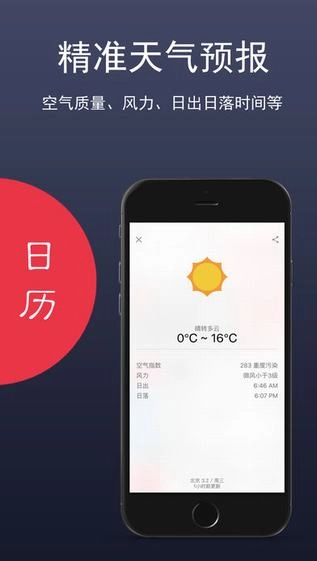 1、非常简明的操作界面,含农历、节假日、天气、黄历、提醒、生日、记事于一体,一目了然,清爽干净。