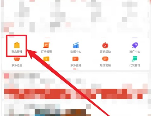 请开启拼多多商家版应用,于主页面的左侧位置,找到并点击“商品管理”选项。