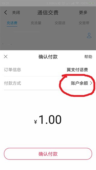 1. 开启翼支付,轻点首页的“手机充值”选项。