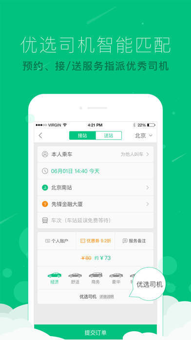 3、根据你的出行目的地为你推荐最合适的车辆以及司机,让你减少等待;