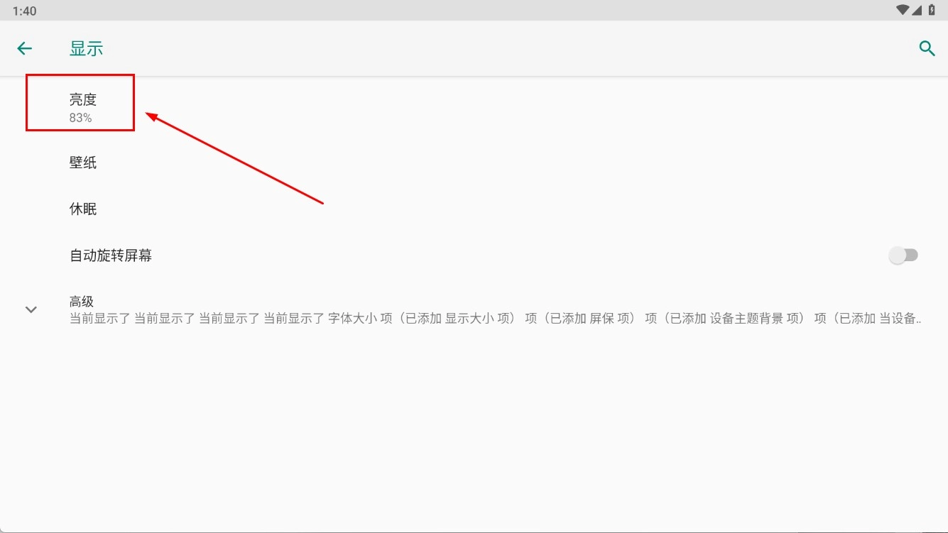 2、于显示设置中寻得【亮度】选项,此刻其数值为【83%】,点击该选项即可进入亮度调节界面以作设置。