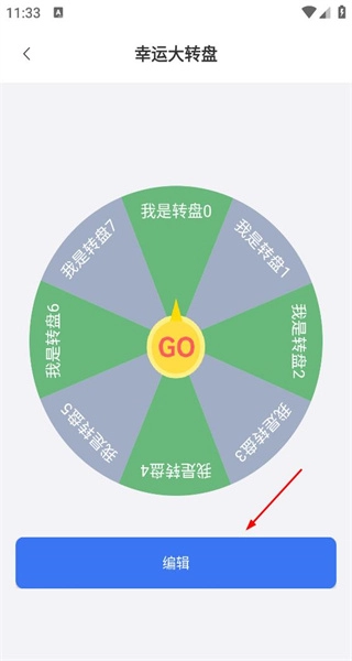 4、切换至幸运大转盘功能,进入此界面,会看到转盘以及编辑按钮,点击编辑后,即可开始自定义转盘内容。