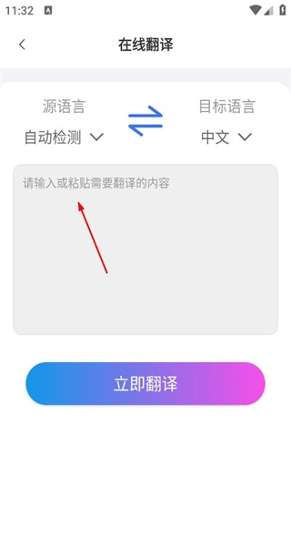 2. 在在线翻译的页面上,找到源语言与目标语言的设置区域,接着输入想要翻译的内容,为执行翻译操作做好准备。