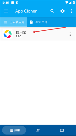 1. 在【已安装应用】页面挑选目标应用(例如【应用宝】),随后进入该应用的克隆配置界面。