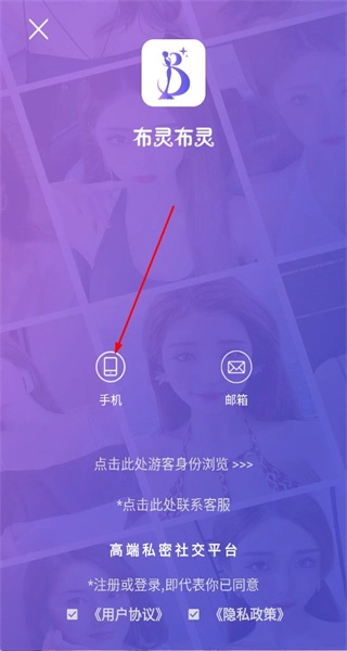 2. 在登录选择界面,你会看到布灵布灵的标识以及手机邮箱登录入口,此时请选择手机选项。