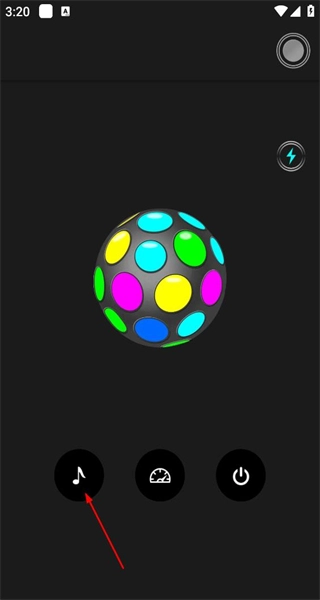 1. 开启软件,进入初始界面,界面中能看到带有彩点的球体以及底部的功能按钮,点击音乐按钮,随即进入音乐选择列表页面。