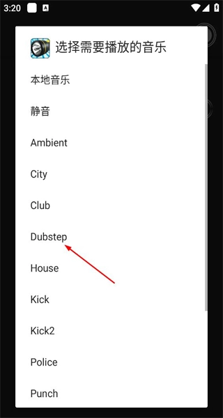 2、进入音乐选择页面,你会看到各式各样的音乐选项,从中挑选Dubstep选项,应用该选项对应的音乐,之后返回应用的主界面。