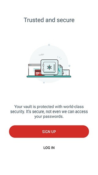 1. 打开LastPass软件,进入界面后,若已有账号,点击“log in”登录;若没有账号,则点击上方“sign up”按钮进行注册。