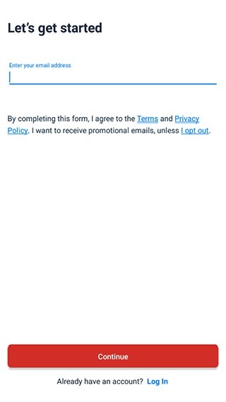 2. 输入邮箱地址继续操作:紧接着进入下一个页面,在相应位置输入自己的邮箱地址,之后点击页面下方的“continue”按钮。