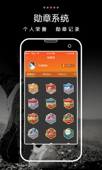 7、勋章系统:清晰记录个人荣誉与跑步成就。