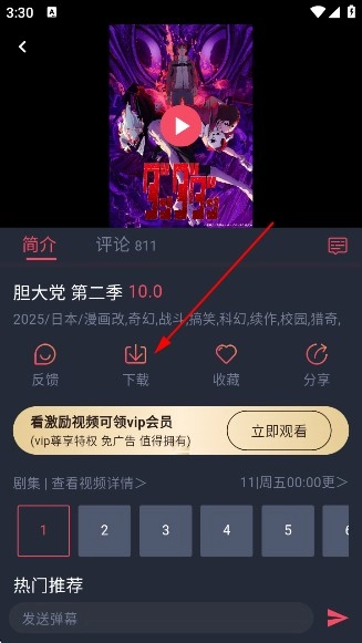 1、选择喜欢的动漫进入到播放页面。