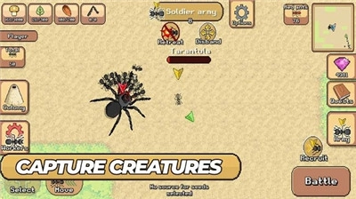 3、你需要对抗各种外来敌人,比如蜘蛛、大黄蜂、甲虫等等,你需要召集你的蚂蚁群落对其发动攻击。