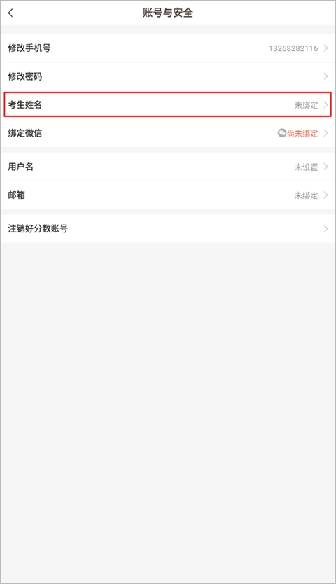 您可以换绑下学生信息,换绑方式:请您在,我的――设置——账号与安全――考生姓名进行换绑《注意:一年只能换绑一次,请您谨慎操作,换绑之后之前的信息无法查看的)