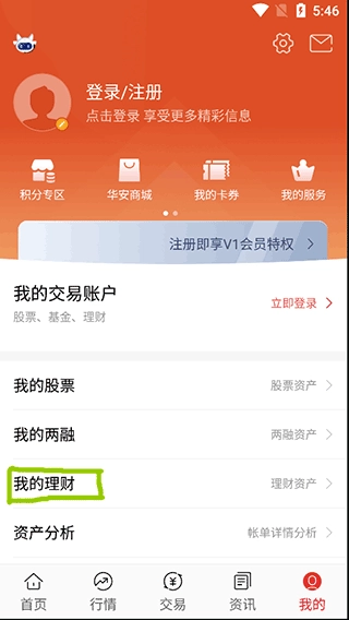 2、点击“我的理财”在里面找到“交易记录”,即可查看。