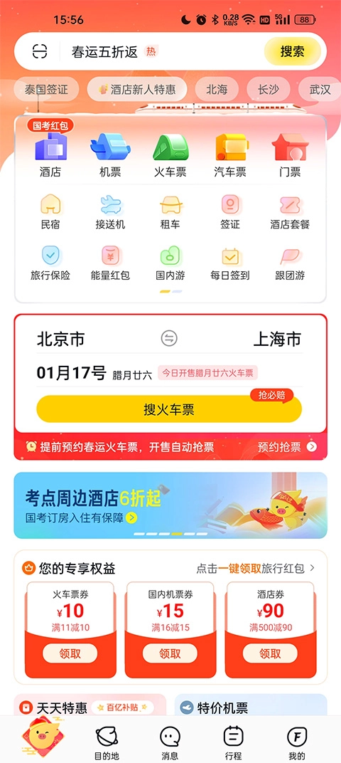 【火车票】限时限量抢火车票88元券