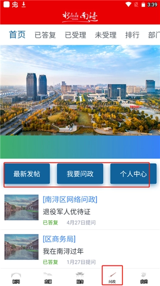 4、点击问政,用户如果有有关疑问的话,可以直接发帖进有关部门发起问政;